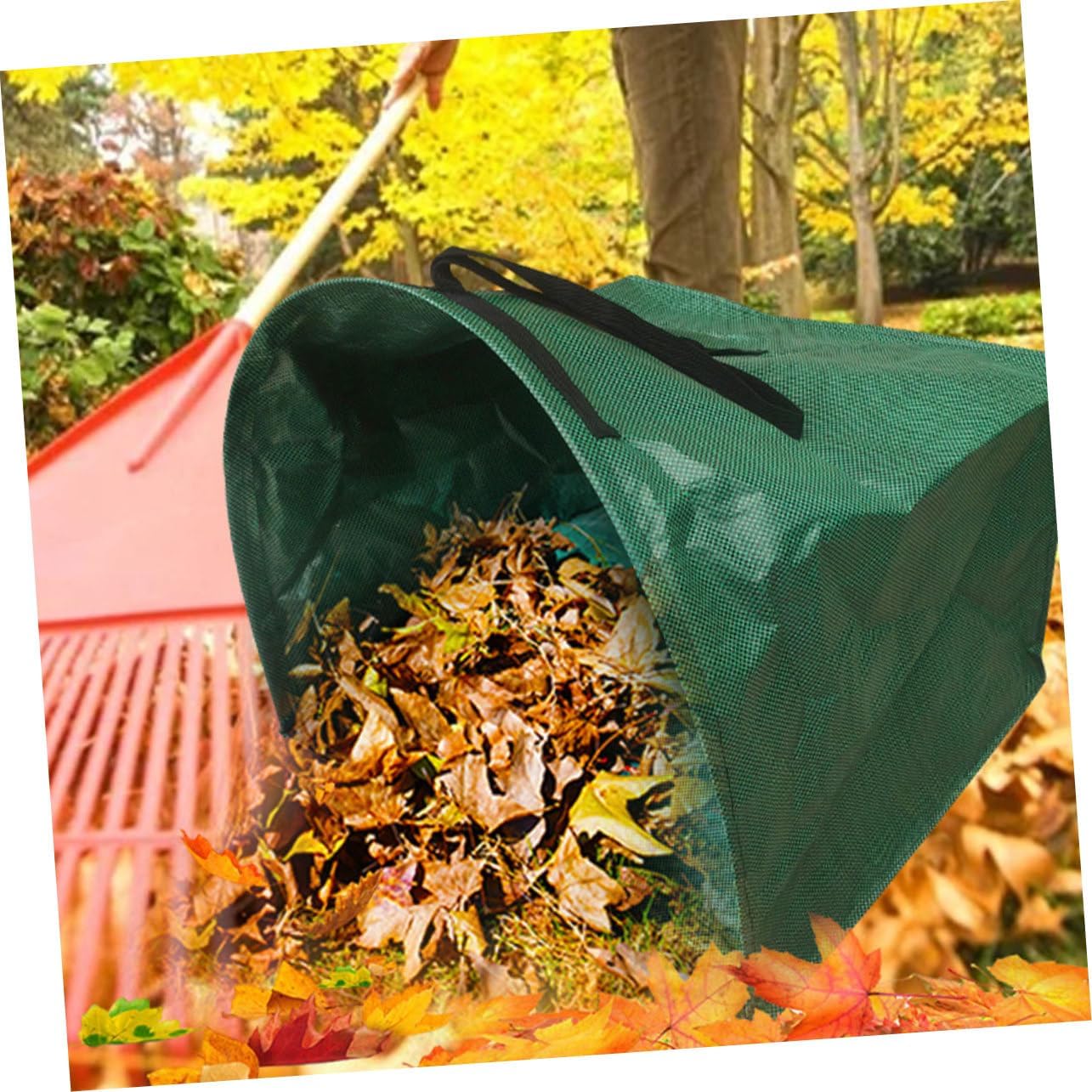 Package Include 1 x leaf collect bag Characteristics -Color:Green trash bags holder -Size:63.00X56.00X53.00cm/24.76X22.01X20.83in lawn and leaf collector -Material:PP collapsible trash can camping -Ideal for various outdoor tasks, this bag is for garden cleanup, horticultural projects, and other outdoor activities trash can holders for outside. -This garden bag boasts a large capacity, making it for collecting a significant amount of leaves and from your garden portable leaf bags leaf collector. -Designed to be foldable, this garden bag can be conveniently stored away, taking up minimal space when not in use portable trash bag holder. -Its unique design allows for easy access to tight corners and edges, ensuring no debris is left behind yard trash bags. -The bag features sturdy woven handles that make it simple to carry, empty, and transport, even when fully loaded trash bag holder.Goods Descriptionlandscaping tools Reinforced woven handles offer strength and reliability, making it easy to carry and empty.deciduous bag Ideal for garden work, yard maintenance, and outdoor events.folding leaf collector The collapsible feature ensures it can be stored compactly when not in use.trash bag holder Designed for efficiency, our dustpan leaf bag boasts a large capacity to handle extensive garden cleanup.yard waste container The unique shape facilitates the cleaning of hard-to-reach garden areas