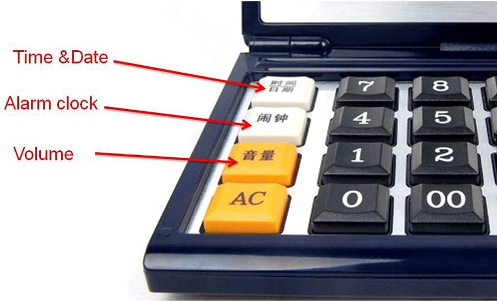 Flexible clamshell design。Real human voice is clear and loud。Large plastic buttons are comfortable to use。12-digit display desktop body。Convenient reminder of alarm time。Not only the calculation function, but also the time display alarm reminder function, which is truly multi-purposeNumber of digits: 12Power supply: batteryUsage: alertMaterial: Plasticno battery.Packing: 1*CalculatorPlease understand that due to differences in lighting or computer monitors, I cannot that the photos and actual colors are the same.Due to different measurement methods, there may be a deviation of 1-2cm.