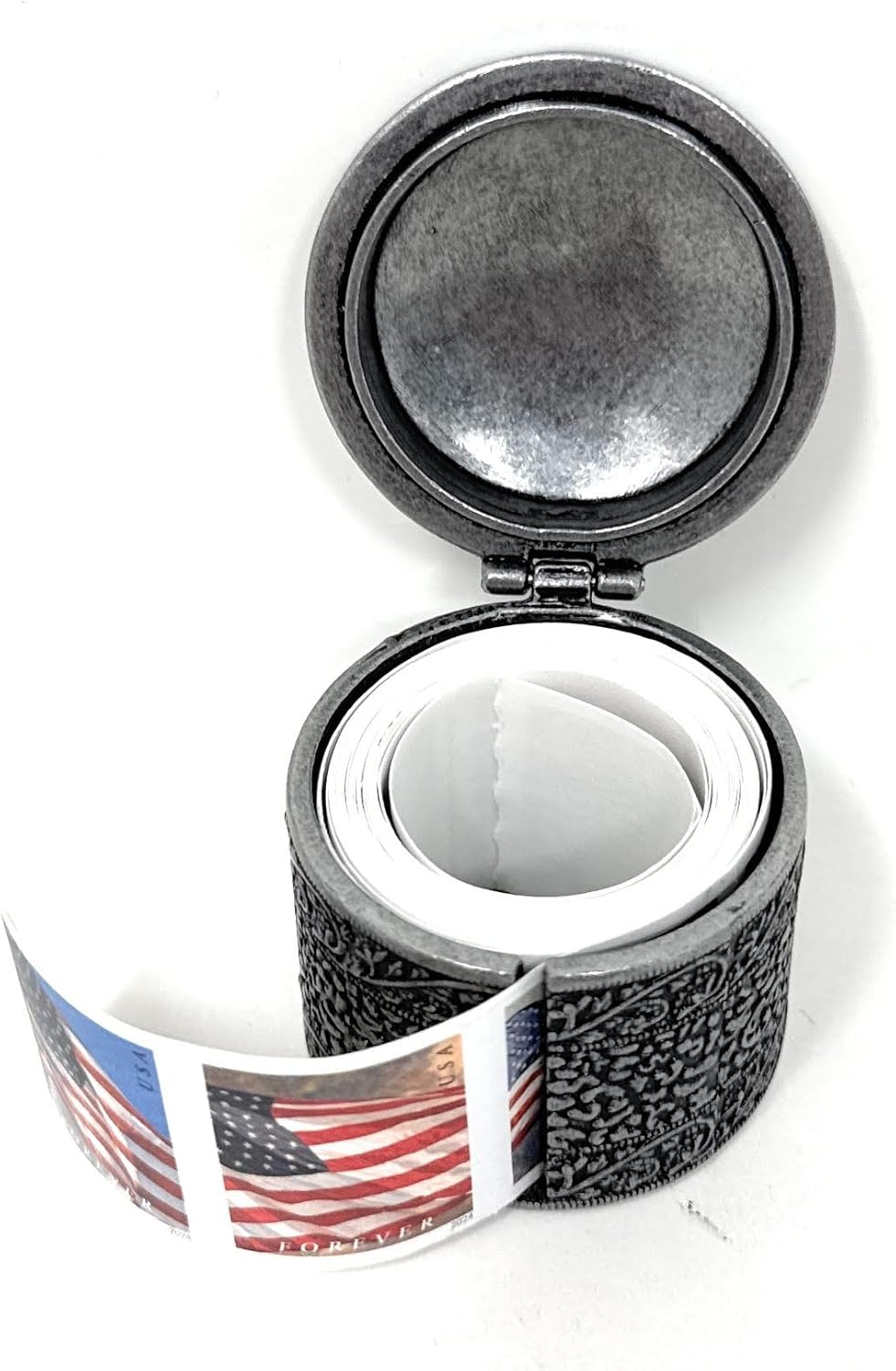 The Floral Metal Stamp Coil Dispenser is a practical and aesthetically pleasing accessory for organizing and dispensing rolls of stamps. This elegant stamp holder features a floral design that adds a touch of charm to any desk or workspace. The durable metal construction ensures that the dispenser provides reliable support for stamp rolls, keeping them neatly contained and easy to access. With its convenient coil design, the dispenser allows for smooth and efficient dispensing of stamps, making it ideal for both personal and professional use. Whether you're sending out invitations, paying bills, or handling daily mailings, the Floral Metal Stamp Coil Dispenser offers a stylish and functional solution for keeping your stamps organized and at your fingertips.